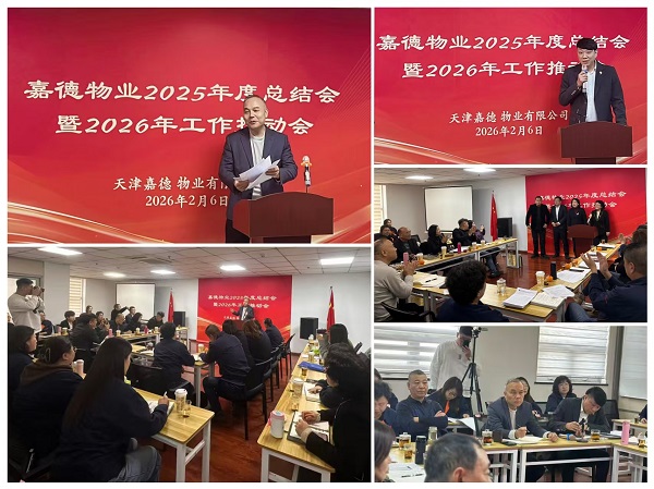 2月6日,天津嘉德物业有限公司2025年度总结会暨2026年工作推动会在友谊大厦会议室隆重召开。公司领导班子、各项目经理、公司及项目核心骨干员工齐聚一堂,全面总结2025年度各项工作成果,复盘经验得失,深刻剖析工作中面临的机遇与挑战,部署2026年重点工作任务,为新一年高质量发展锚定方向、凝聚合力。